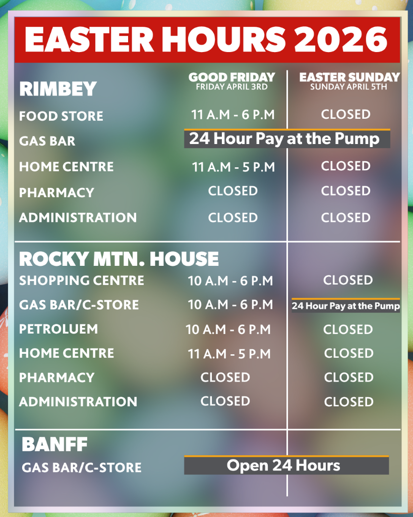 Happy Easter! Please note our Easter Hours for 2026