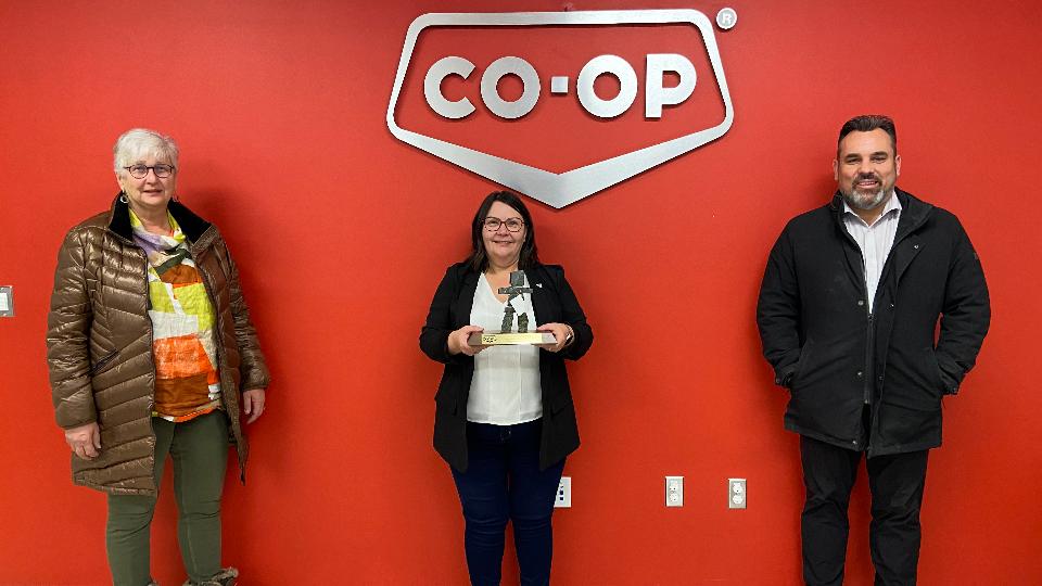 Donna Smith, Board of Director Representative for FCL, presented a very special Inuksuk Award to Evergreen Co-op General Manager, Shane Buss and Evergreen Co-op Board President, Desiree Vandenhoven, in Rimbey to commemorate 75 years! 🌟🎉